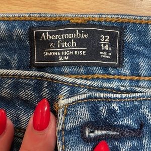 Abercrombie & Fitch Simone High Rise Slim jeans, size 14R; bought these from another posher brand new with tags and worn them a few times. Been washed and dried. These are slim so they are much tighter fitting than a normal size 14. Frayed ankle. Loved these, but they are now too big and now must go! Make me an offer!