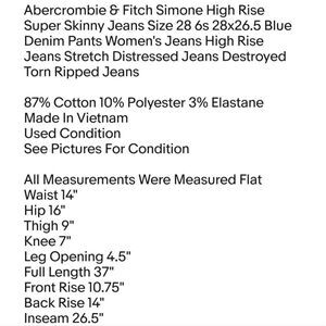 Abercrombie & Fitch Simone High Rise Super Skinny Jeans Size 28 6s 28x26.5 Blue Denim Pants Women's Jeans High Rise Jeans Stretch Distressed Jeans Destroyed Torn Ripped Jeans