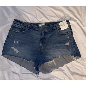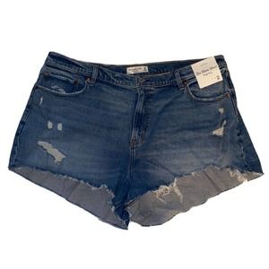 Abercrombie & Fitch Size 35/20 Curve Love The Mom Shorts High Rise Blue NWT