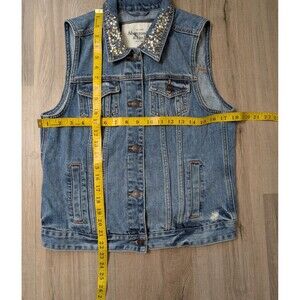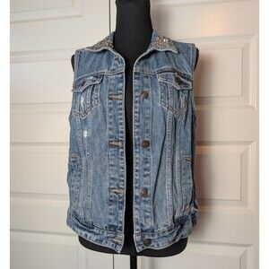 Abercrombie & Fitch Size L Denim Vest Custom "Girl Power" Sequins Distressed