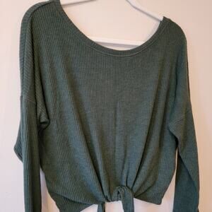 Abercrombie Fitch Size M Long Sleeve Ribbed Tie Front Top Ribbed Green Soft Cozy