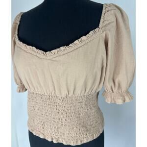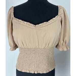 Abercrombie & Fitch Size XL Brown Puff Sleeve Smocked Crop Top Boho Y2K Women's