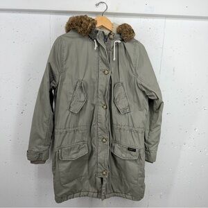 Abercrombie & Fitch Size XL Olive Drab Faux Fur Trim Hood Utility Parka Jacket