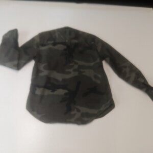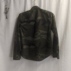 This is heavy, sturdy cotton fabric that has that look of quality. Camo is a fun trend that I hope lasts quite a while. This is cute buttoned up, but I like it open and over a tank top as well, like a light jacket. Two pleated breast pockets with flaps, and a rounded hem, regular length. It's definitely a regular XS, not oversized like many shirts lately, so see measurements if you're unsure. Excellent condition.