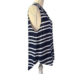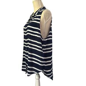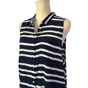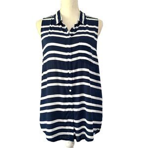 Abercrombie & Fitch Sleeveless Button Front Shirt Navy/White Stripe Size Large
