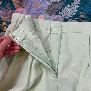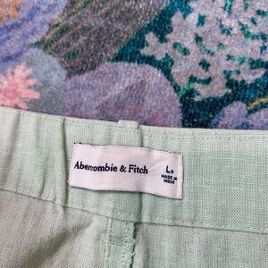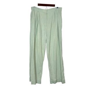 Abercrombie & Fitch Sloane Pants Womens Large light pale green Tailored Linen Blend Pleated pistachio celery pastel Wide leg