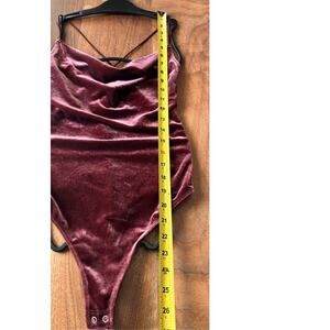 Abercrombie & Fitch Small Bodysuit Purple Velour Spaghetti Crossback Slouch Neck