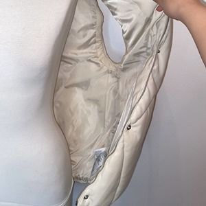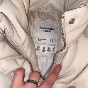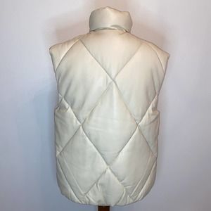 Abercrombie & Fitch Small Medium Beige Cream Faux Leather Vest quilted Oversized