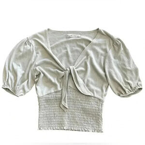 Abercrombie & Fitch Smocked Blouse Shirt With Tie Front Size Small Green