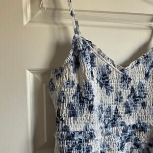 Abercrombie & Fitch smocked floral tiered mini dress. This has adjustable straps.