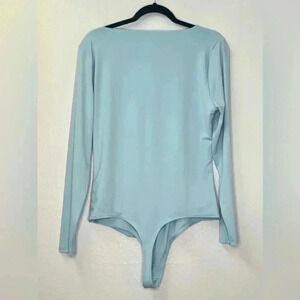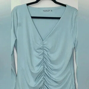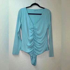 Abercrombie & Fitch Soft A&F Collection V-Neck Ruched Front Long Sleeves Bodysuit Sz XL in Sky Blue