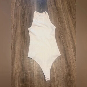 Abercrombie & Fitch Soft A&F White Ribbed High Neck Razorback Bodysuit Size S