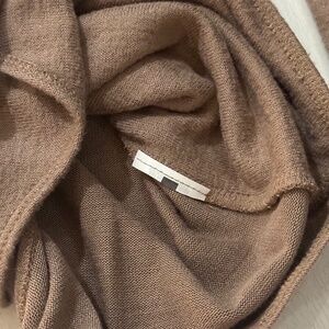 This soft and slim-fitting longsleeve bodysuit features a crew neckline and two-snap bottom closure. Color is a pretty caramel/light brown. This piece is sooo soft and washes incredibly well.