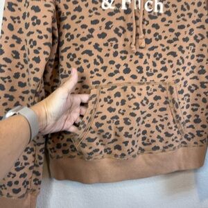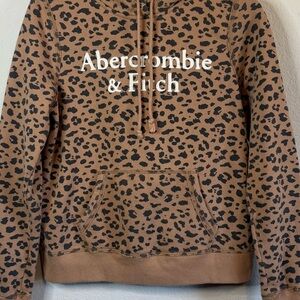 Abercrombie & Fitch Spellout Logo Soft AF Leopard Print Hoodie Shirt Size Medium