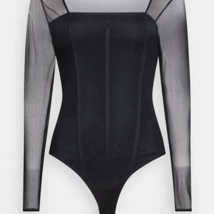 Abercrombie & Fitch Square Neck Mesh Long Sleeve Bodysuit Gray