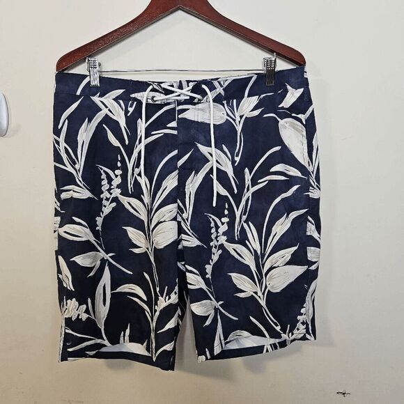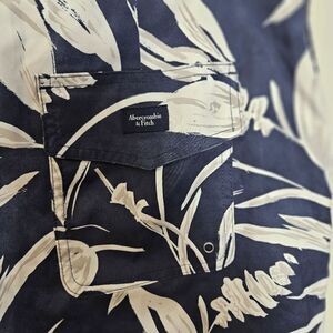Abercrombie & Fitch Stretch Swim Stretch Trunks Mens Blue and White Foiliage Siz