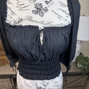 Abercrombie & Fitch Stringy Ruched Milkmaid Cropped Blouse Sz S 3/4 Puff Sleeve