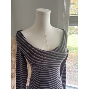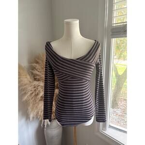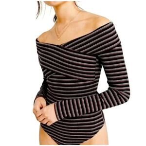 Abercrombie & Fitch Stripe Off Shoulder Bodysuit Size Small Long Sleeve