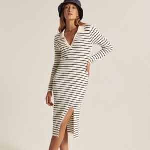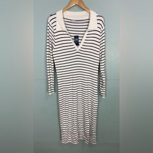 Abercrombie & Fitch Striped Blue White Collared Long Sleeve Midi Dress XL