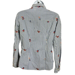 Abercrombie & Fitch Striped Button Front Shirt Sz S Embroidered Flowers Blouse