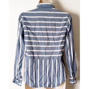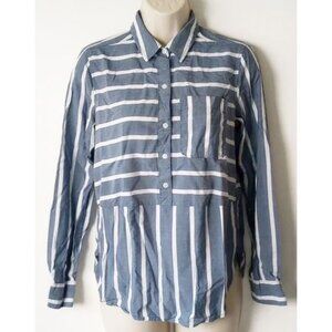 Abercrombie & Fitch Striped Chambray Half-Button Down Shirt XS Blue-Gray White