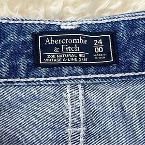 Abercrombie & Fitch Striped Denim Mini Skirt High Waist Raw Hem 24