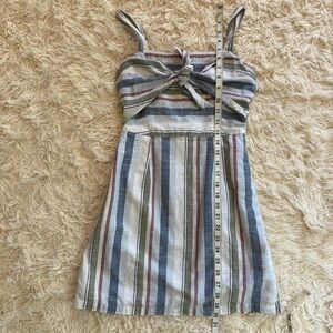 Abercrombie & Fitch Striped Linen Mini Dress SZ XS Tie Front Coastal Aesthetic