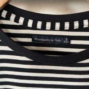 Cute Abercrombie & Fitch women’s long sleeve, striped bodycon shirt dress, size small. This is a stretchy cotton blend dress, excellent condition! It has a cute lettuce hem at the bottom ✨