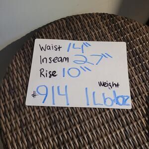 Measurements: Waist 14", Rise 10", Inseam 27"