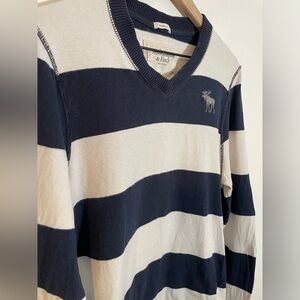 Abercrombie & Fitch Sweater Navy/White Muscle VNeck Stripe Long Sleeve XL Y2K