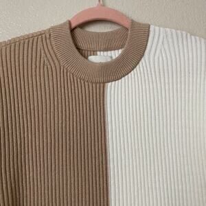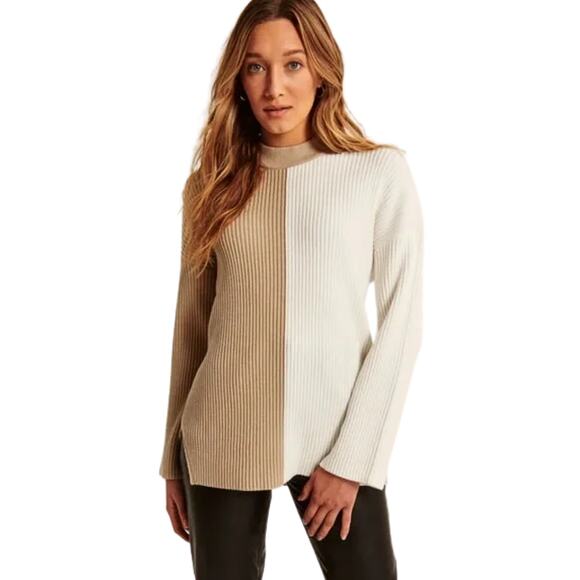 Tan Luxeloft Colorblock Ribbed Knit Sweater Abercrombie & Fitch Small
