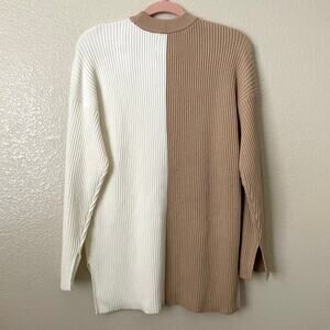 Abercrombie & Fitch Sweater Womens Small Tan Luxeloft Colorblock Ribbed Knit