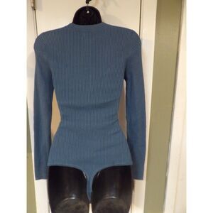 Description - Nice bodysuit sweater. Dark aqua with a cut out in front, light weight sweater.