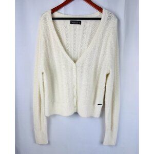 Abercrombie Fitch SweaterSoft AF Ivory Cardigan Cozy Fluffy Knit Womens XL