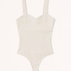 cream/ beige bodysuit in. corset-style seaming details along the bodice, sweetheart neckline and two-snap bottom closure. size XS. worn only once.