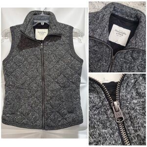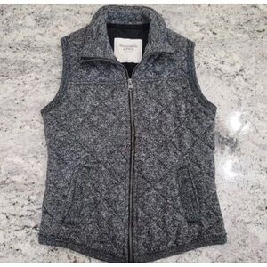 Abercrombie & Fitch Sz S Marled Gray Quilted Zip Up Vest Mock Neck Jacket Womens