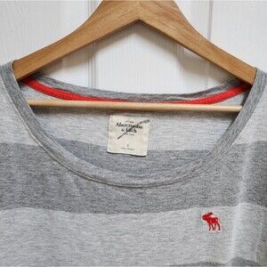 Abercrombie & Fitch T Shirt Womens Small Gray Striped Modal Blend 3/4 Sleeve Logo Tee Top Casual Athleisure School Lounge Weekend Travel Streetwear