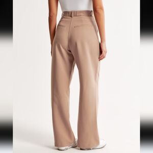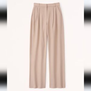 Our signature A&F Sloane Tailored Pant in an everyday menswear fabric, that's perfect for dressing up or down. This Tailored Pant is an ultra-high rise tailored wide leg pant with figure-flattering pleating details, a functional fly and pockets and a partially elasticated waistband for ultimate adjustability. The intended length hits the bottom of a flat shoe.