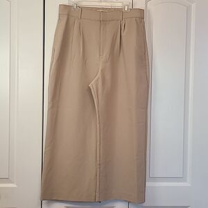 Abercrombie & Fitch Tailored Wide Leg Cropped Trouser Pants Camel Khaki Size L