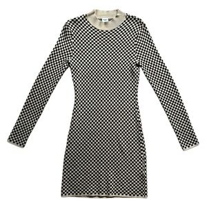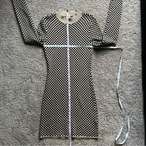 Abercrombie & Fitch Tan Black Checkered Long-Sleeve Bodycon Sweater Dress Size Small