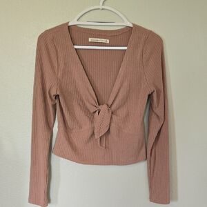 Abercrombie & Fitch Tan Knotted Front Crop Top Size Medium