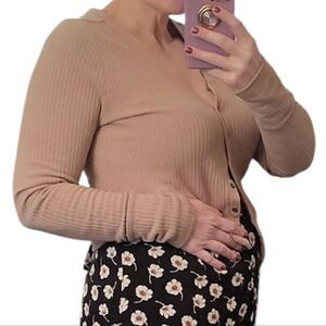 Abercrombie & Fitch Tan Ribbed Button Down Front Fitted Viscose Cardigan Large