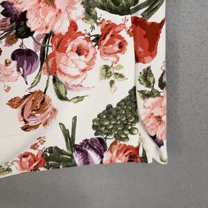 Color/Pattern: A floral pattern featuring shades of pink, cream, and green on a white background.