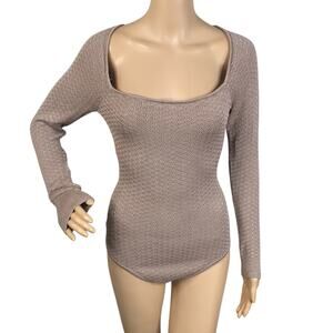 Abercrombie & Fitch Taupe Brown Pointelle Knit Square Neck Bodysuit Top SZ S