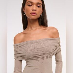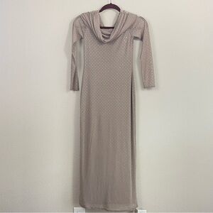 Abercrombie & Fitch Taupe Off-The-Shoulder Rhinestone Mesh Maxi Dress Size XSP