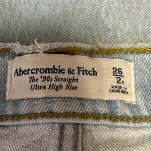Abercrombie & Fitch The 90s Blue Denim Ultra High Rise Ripped Straight Jeans 2