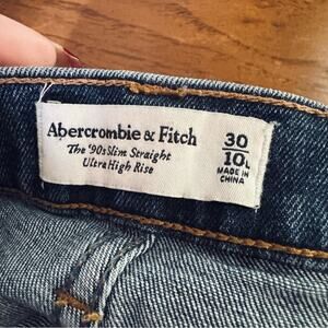 Abercrombie & Fitch The 90’s Slim Straight Ultra High Rise Jeans Womens size 30/10 Long. Has five pockets and five belt loops. Front zipper and button closure. 99% cotton, 1% elastane. Measures approximately 15 1/2” flat lay waist, 12 1/2” rise, 31”inseam. In great condition.