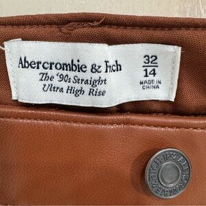 Abercrombie & Fitch The 90s Straight Ultra High Rise Faux Leather Pants Brown 14