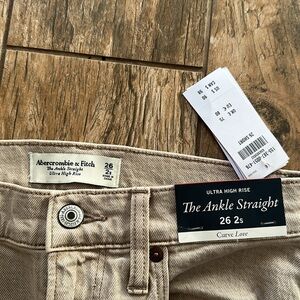 Abercrombie & Fitch The Ankle Straight Ultra High Rise Curve Love Jeans Tan 26/2s. New with tags