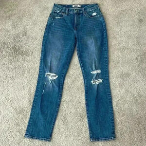 Abercrombie & Fitch mid rise boyfriend jean. Distressed detail Excellent condition. Approximate inseam: 29”
